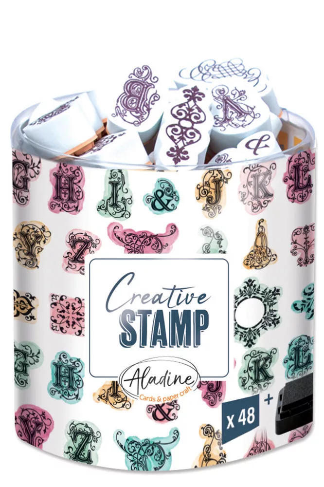 A készlet 48 db bélyegzőt tartmaz, habszivacs alapon.