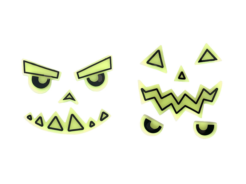 A készletben 2 szett gél matrica található, amelyek könnyen felragaszthatók a tök felületére. A fluoreszkáló hatásnak köszönhetően a matricák sötétben világítanak, így esténként még látványosabbak.